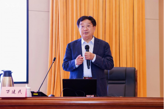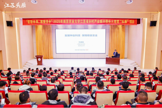 10月29日上午,中国工程院万建民院士应邀在南京农业大学滨江校区,为2025年全体江苏省“头雁”同学作专题辅导报告。讲座以《发展种业科技,保障粮食安全》为题,紧扣我国粮食安全和现代农业发展的战略需求,系统阐述了当前生物育种领域的科技进展与发展态势,深入剖析了种业科技创新在提升作物产量、改善品质及增强抗逆性等方面的重要作用,引导广大“头雁”立足地方实际,探讨如何将先进育种技术与产业发展相融合。整场报告内容丰富、视野开阔,兼具理论高度与实践指向,为“头雁”准确把握种业发展方向、增强产业带动能力提供了重要参考和专业指导。