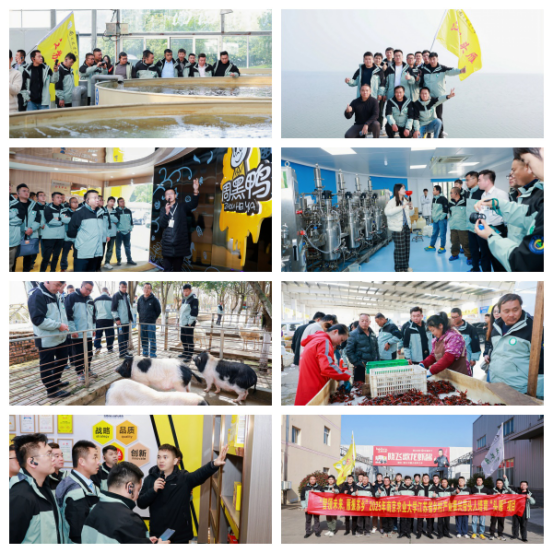 湖北省跨省研学阶段同样精彩纷呈。南京农业大学组织学生走进华中农业大学,联合举办“苏滇桂头雁聚力,共探乡村振兴创业新路径”产业发展论坛。论坛上,三地“头雁”代表纷纷登台,分享创业案例与产业发展心得,围绕农产品加工、乡村产业融合等关键议题展开思想碰撞,智慧的火花在交流中不断绽放。学生们还走进周黑鸭国际控股有限公司、汇春名优专业合作社、湖北小龙虾控股集团等标杆企业与示范基地,学习农产品深加工、特色水产养殖、农业产业化运营的先进模式;探访武汉科前生物股份有限公司、江夏区现代化生猪养殖场等,了解农业生物科技研发与规模化养殖的前沿成果。从产业链上下游融合到科技赋能农业,学生们拓宽了发展思路,为乡村产业振兴注入了新的活力。