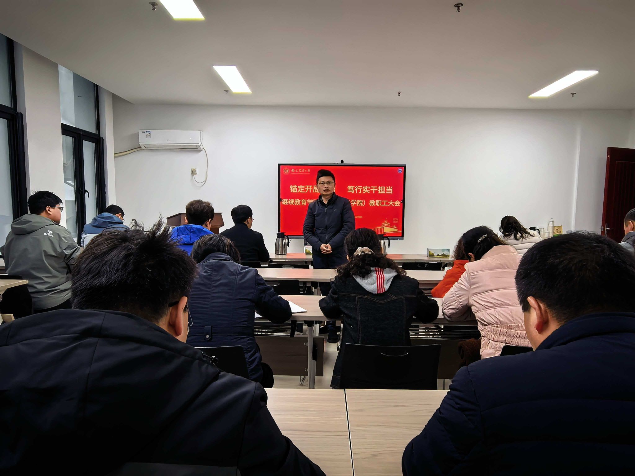 3 月 11 日下午,继续教育学院(乡村振兴学院)在卫岗校区第三实验楼 302 会议室召开新学期教职工大会,全面部署新学期工作。学院党总支书记夏拥军主持会议,全院教职工参加会议。